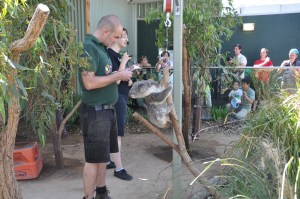 An amusing anecdote from Australia. My daughters and I recently visited a zoo in Sydney, Australia on koala weigh-in day! Every koala in the compound had to be weighed-in. They had a clever system. They hung a branch from a hanging scale, gently removed the koala from his or her perch in a gum tree, and transferred each one individually to the hanging branch. They then carefully recorded the weights (minus the branch of course) to track the growth and well-being of their koalas! The koala-keepers looked pleased with the results and the koalas all looked happy when the procedure was over!