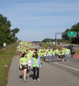 UNC Eating Disorders first timers at the walk were heartened by the turn out and the dedication of those who return year after year for this amazing event. Christine Peat and Sara Trace, post-doctoral fellows, both exclaimed “great turnout for a fantastic cause!” Cristin Runfola, also a post-doctoral fellow found it inspirational to walk among so many lively and enthusiastic walkers who supported mental health research and treatment. The walker with the eating disorders group who came from farthest away was Thomas Frisell, a PhD student from the Department of Medical Epidemiology and Biostatistics at the Karolinska Institutet in Stockholm, Sweden. Thomas marveled at the sea of green as the walkers embarked on their morning journey. The Foundation of Hope has funded work on eating disorders with the Swedish Twin Registry as well as work on the 17 country international Genetic Consortium for Anorexia Nervosa (GCAN) which is led by UNC.